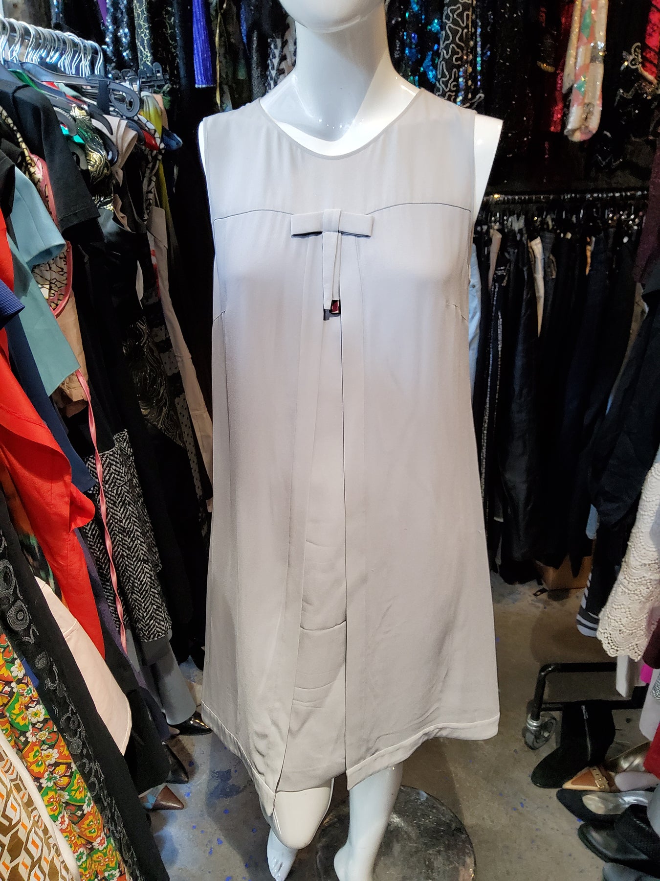 Robe mi-longue RECH Paris couleur gris sans manches en soie. Très bon état.