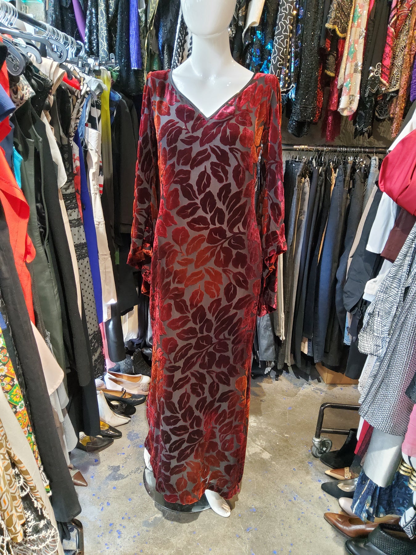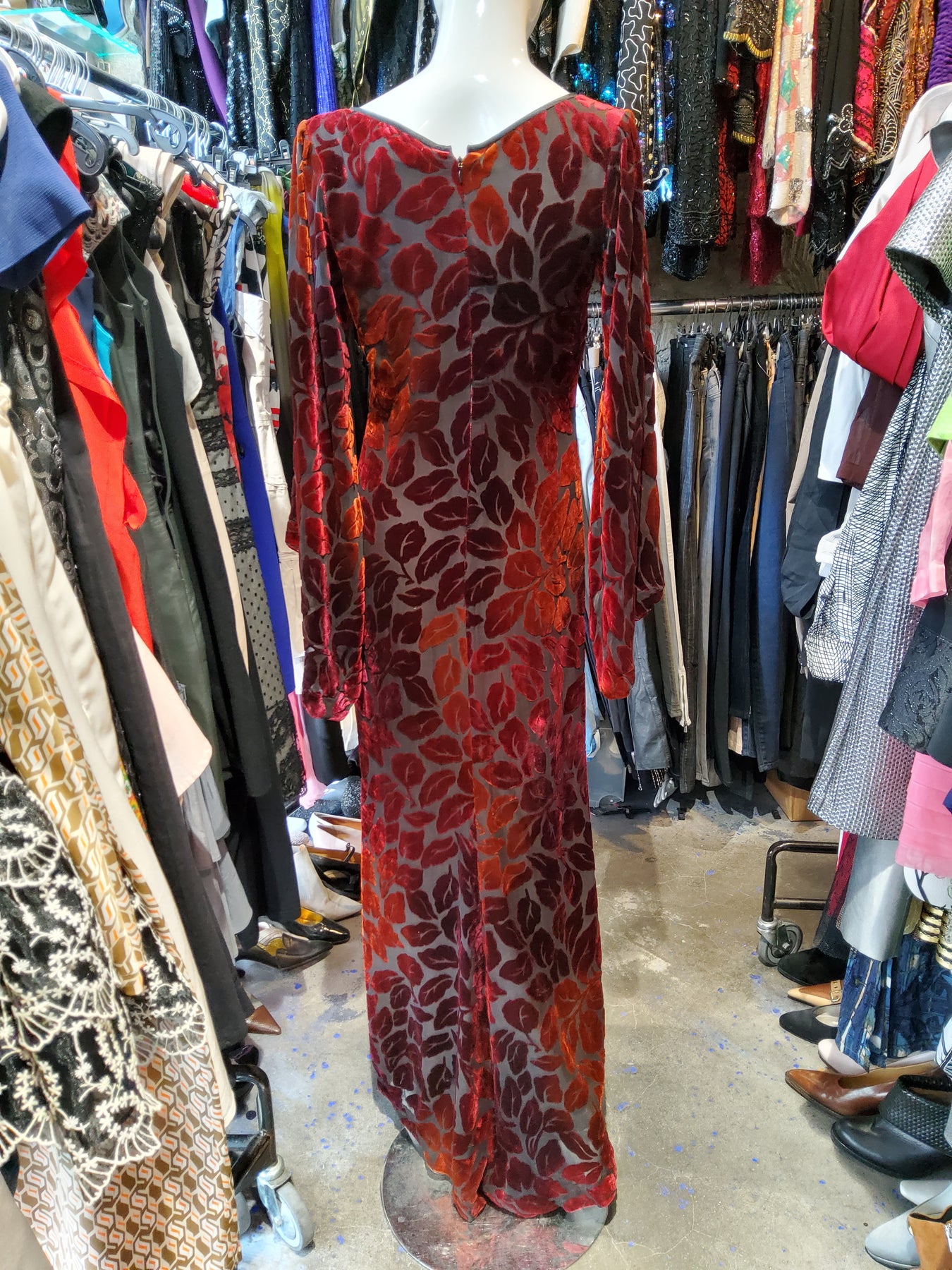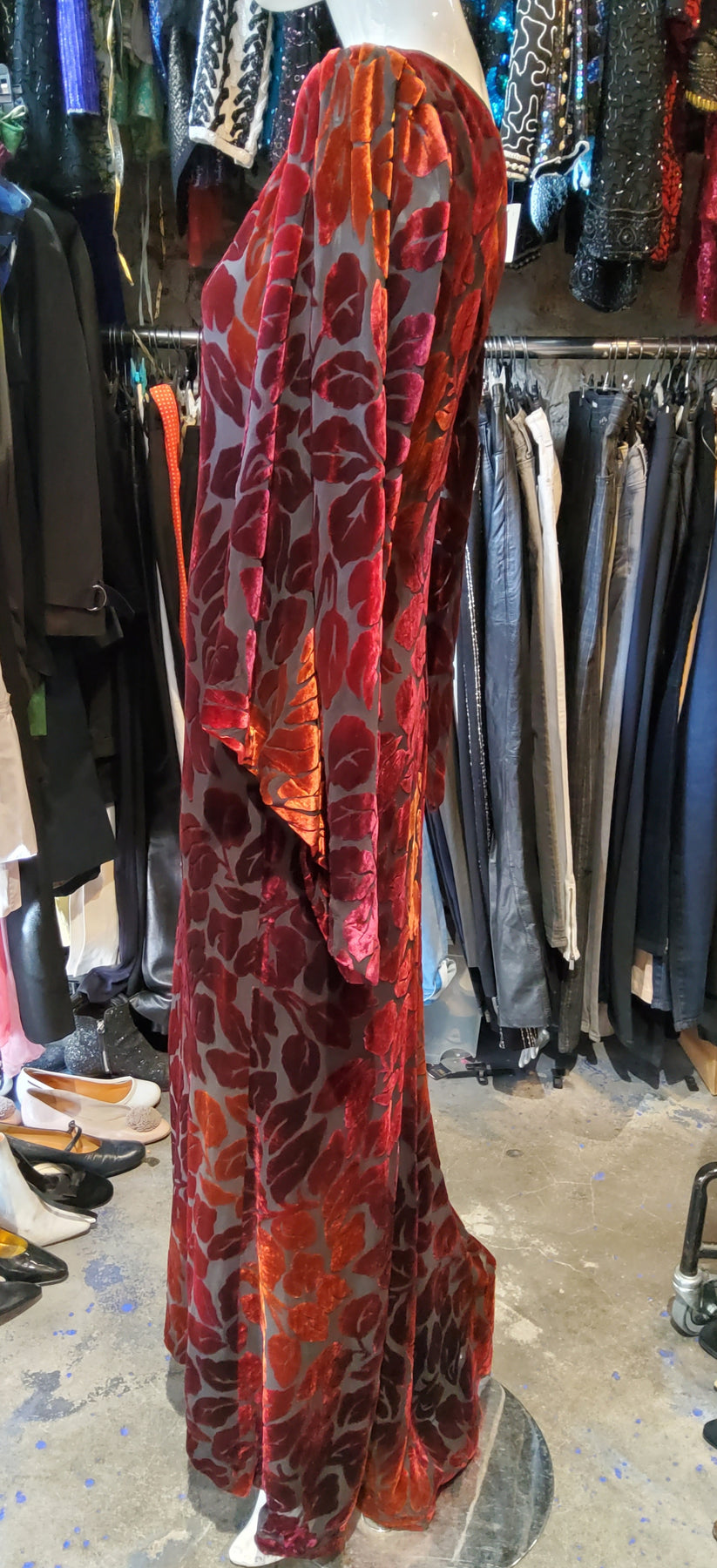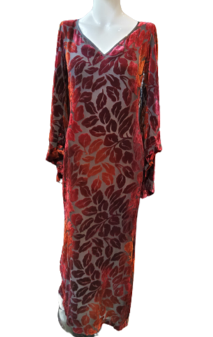 Robe longue Yves Saint Laurent multicolore en viscose et soie. Très bon état.